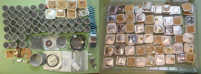 So, laying in my hospital bed loaded up with pethidine and plenty of time to think, the idea occurred to me that it would be much nicer to have a brand new or NOS 321 Speedmaster, rather than a used one. Only problem is that they have been out of production for more than forty years. Would it be possible to make one from spare parts? No problem if all the parts can be found. As it happened, I had converted all my service manuals to pdf files in case I got watch withdrawal symptoms while in hospital, and I had them on my notebook (I also had some favorite watches with me too, to help keep me company). So I set to work to build up a complete parts list of what I would need. That isn't as easy as it sounds, as the Omega 321 parts manual starts with the 27 Chro from its inception in 1942, and progresses stage by stage through the various versions of the 27 Chro, to the 320, and up to the latest 321 - there being no single absolute list of 321 parts as such. There are many common parts from step to step (eg. a 320 barrel is not the same as a 321 barrel, but the reset hammer for a 320 is the same as a 321 reset hammer etc.) so it was a real exercise to do, and took a long time. There are a total of six variants of this movement. Having done that, I set about trying to source the parts, and for a while it looked like I was not going to be able to get everything. To cut a long story short, it took three years and dozens of emails and phone calls to suppliers all around the world. I finally thought I had everything I needed to complete my project. If you think I got it right first time - no way! - it took many re-orders to correct my mistakes, and I ended up with lots of extra parts that I wouldn't need. Of course, as I got closer and closer to a complete set of parts, I became quite anxious, picturing in my mind having all but one special unobtainable part which would stop me from finishing! And it is true, many 321 parts really are very hard to get, but I was lucky in the end.