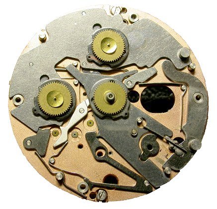 The functional specifications for the actual movement are the same as for the Esa 9162. It is a complex watch in its construction and operation. Definitely one only for the experienced repairman to work on. The most complex module is the chronograph section. Esa had the chronograph modules made by Dubois-Depraz, who were specialists in designing compact chronograph mechanisms.