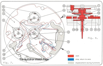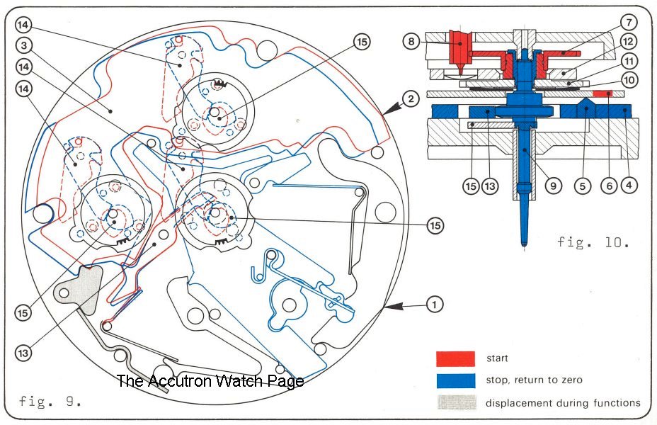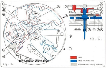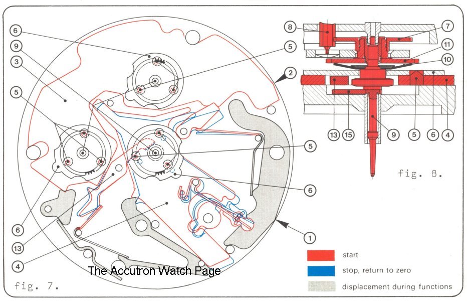 4) Intermediate Wheel 5) Chronograph Driving Wheel 6) Time Display Wheel Train 7) Hand-Setting Wheel 9) Index Wheel |